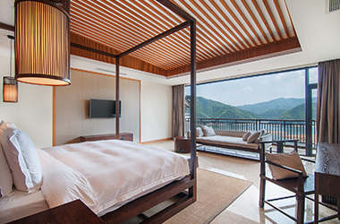 寧波市鄞州區生活垃圾焚燒發電廠坐落于青山綠水之間,深紅色...